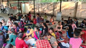 Wij bezochten de Okhla Market waar de kinderen op een afgeschermd stuk grond extra les kregen na schooltijd. Toen wij er kwamen waren er zeker zo’n 100 kinderen. We hebben van de kinderen zelf uitleg gekregen over het CDK programma en dat heeft ons weer veel ideeën gegeven om dit ook elders uit te kunnen rollen. De kinderen waren zeer gemotiveerd om aan het programma van Butterflies mee te doen.