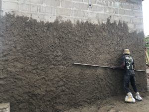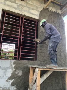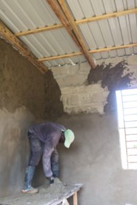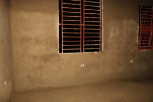 the electrical conduits have been prepared, the walls have been plastered, and the windows and doors have been installed