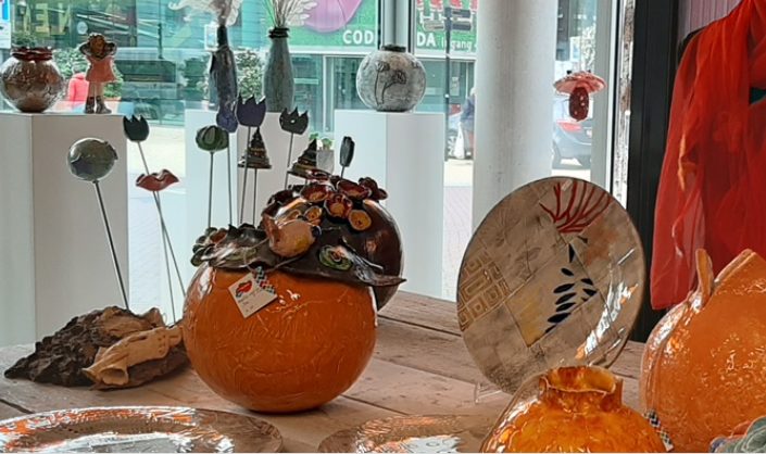 Bij Het Atelier van De Passerel maken we bijzondere producten. Kunstwerken van wol, stof en keramiek. Denk aan dieren van keramiek, slingers, vazen en schorten.